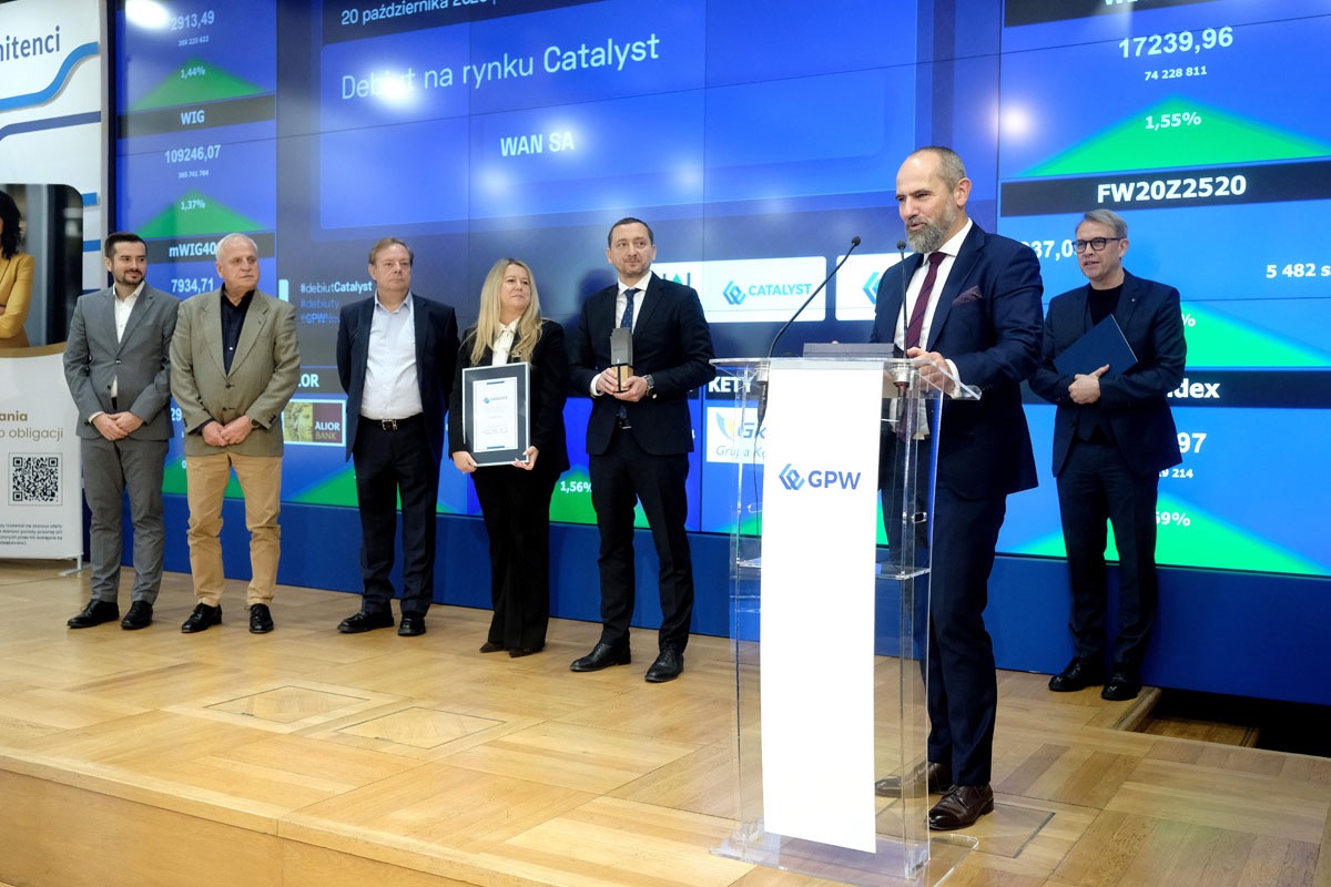 On October 20, the company WAN debuted on the Catalyst market of the Warsaw Stock Exchange with two series of corporate bonds with a total nominal value of PLN 50 million. This was the 25th bond market debut this year and the 159th in the history of Catalyst.